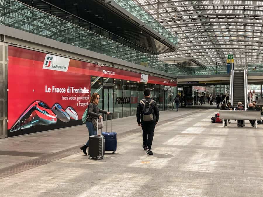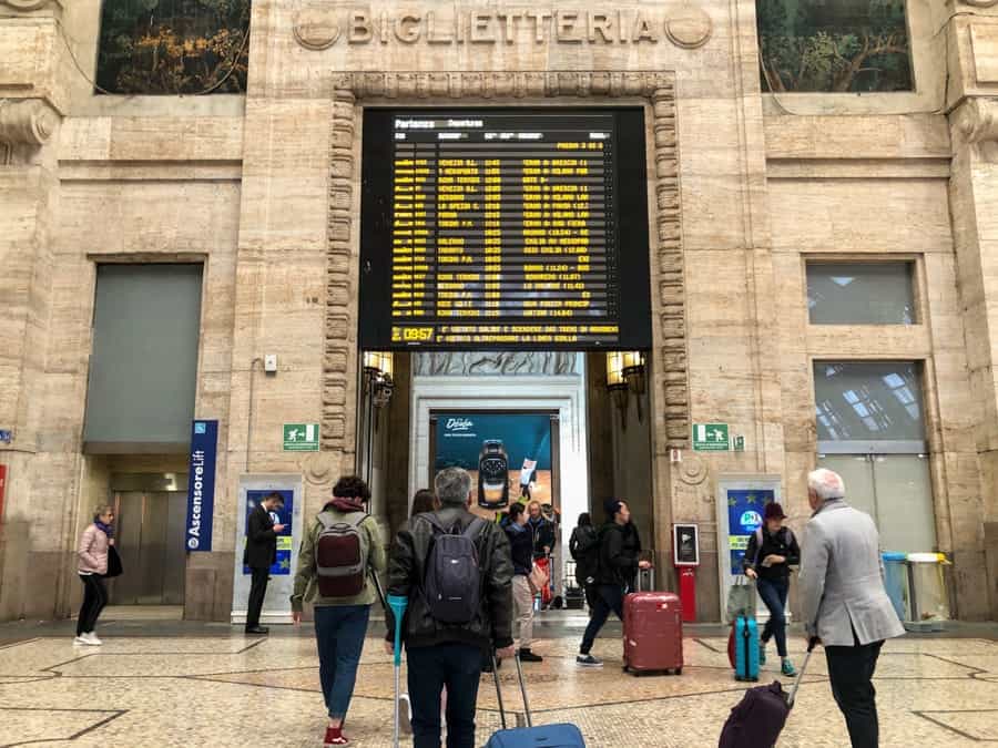 - 열차 일정 보드를보고 어떤 게이트와 플랫폼에서 갈 것인지 확인하십시오.밀라노의 방송국에는“게이트”가있어 유효한 티켓을 통과해야합니다. 거기에서 실제 열차 플랫폼에 도달하게됩니다. 게이트는 플랫폼 앞에서 발표되므로 항상 게이트를 통과하고 플랫폼 번호를 기다리는 동안 군중을 피할 수 있습니다.