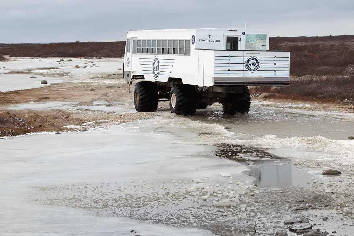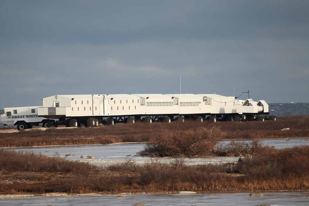 북극곰을 보는 가장 인기있는 방법은 처칠에 머무르고 툰드라 차량 사파리에 자리를 예약하여 처칠 야생 동물 관리 지역을 탐험하는 것입니다. 이 툰드라 차량은 거친 지형을 가로 지르는 트랙터 휠의 버스와 비슷한 대형 사파리 스타일의 차량입니다.