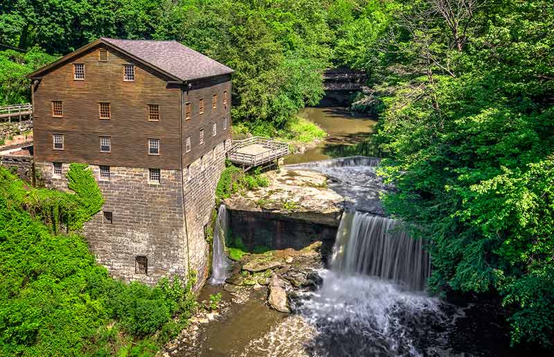 밀 크릭(Mill Creek)을 따라 위치한 이 공장은 밀, 메밀, 옥수수를 갈아서 이리 운하(Erie Canal)를 따라 운송할 밀가루와 가루로 만드는 데 사용되었습니다.